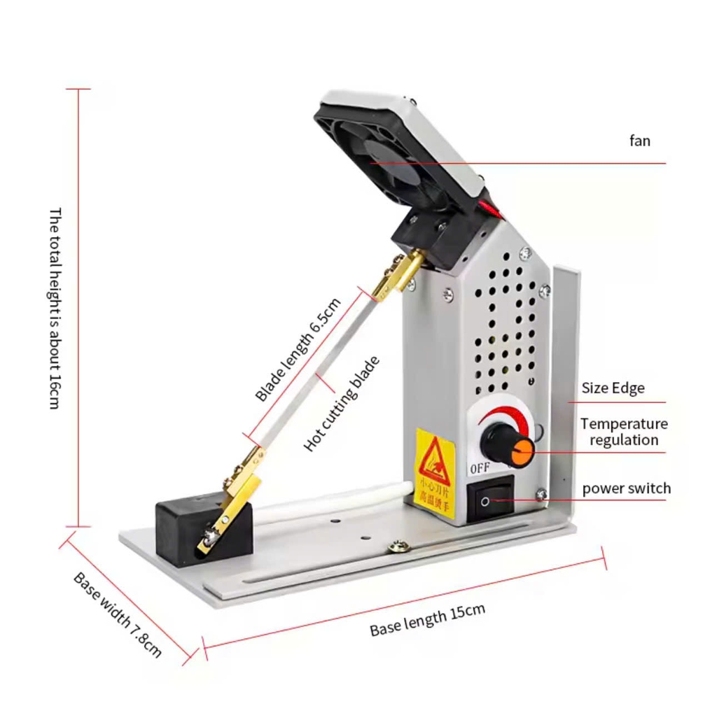 Máy cắt dây đai nhiệt cơ 11 cm là thiết bị chuyên dụng trong ngành công nghiệp, được thiết kế để cắt các loại dây đai như dây dù, dây nhựa, dây balo, hoặc nhãn mác trong may mặc. Với lưỡi dao nhiệt đạt đến nhiệt độ cao, máy cho phép cắt chính xác, gọn gàng, và đảm bảo viền dây không bị tưa xơ.