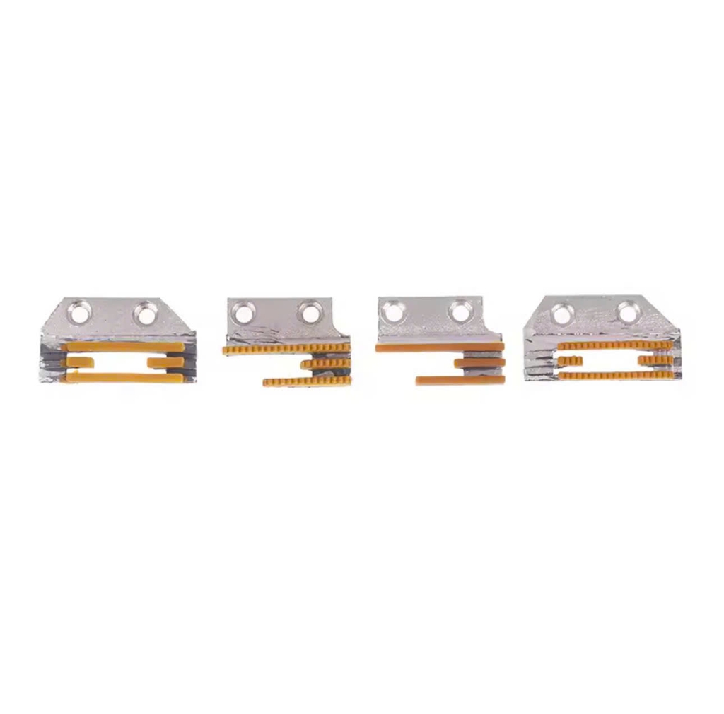 Chất liệu thép ( hoặc hợp kim), bề mặt răng tiếp xúc vải được phủ lớp nhựa ( có răng hoặc không răng) giúp giảm ma sát và tránh bị xước vải, tăng năng suất may.